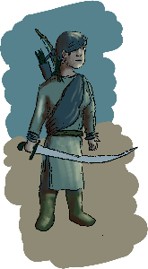 A confident man enters from the left, book of prose in his right hand and a quill tucked behind his ear. (58) The Bard scans the arena for his opponents, ignoring the noise from the rabble in the crowd.